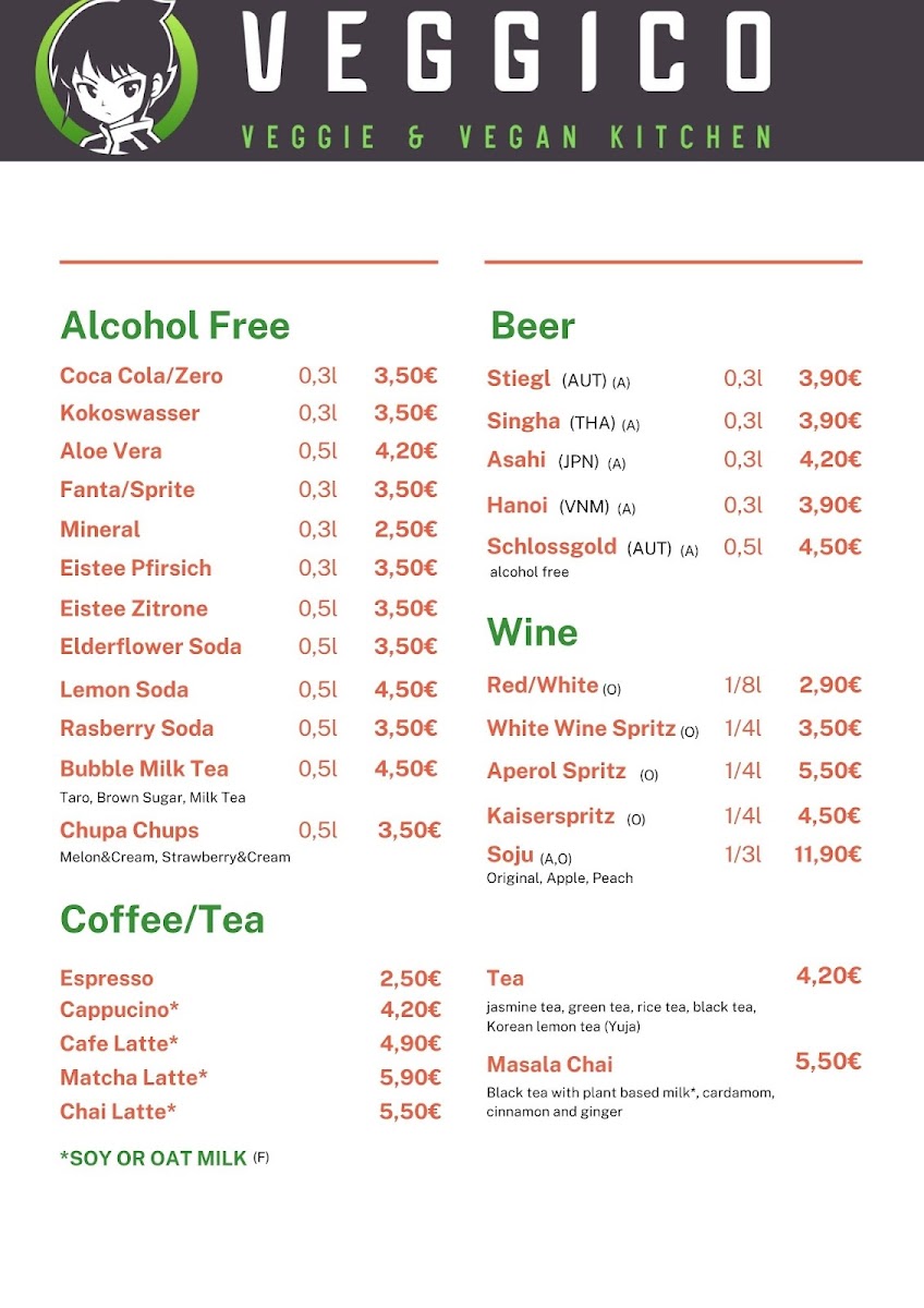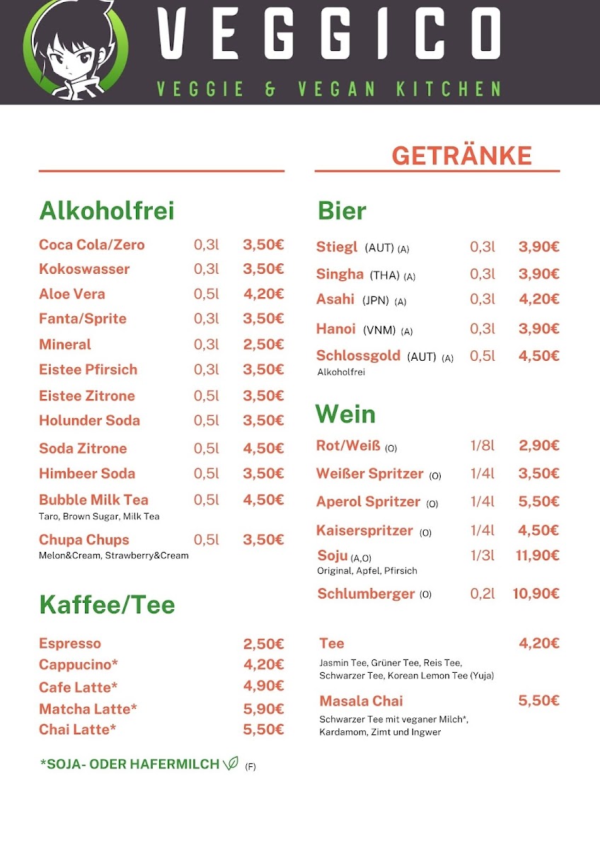 ................................€5.80Matcha Latte(hafermilch/kokosmilch/Sojamilch)