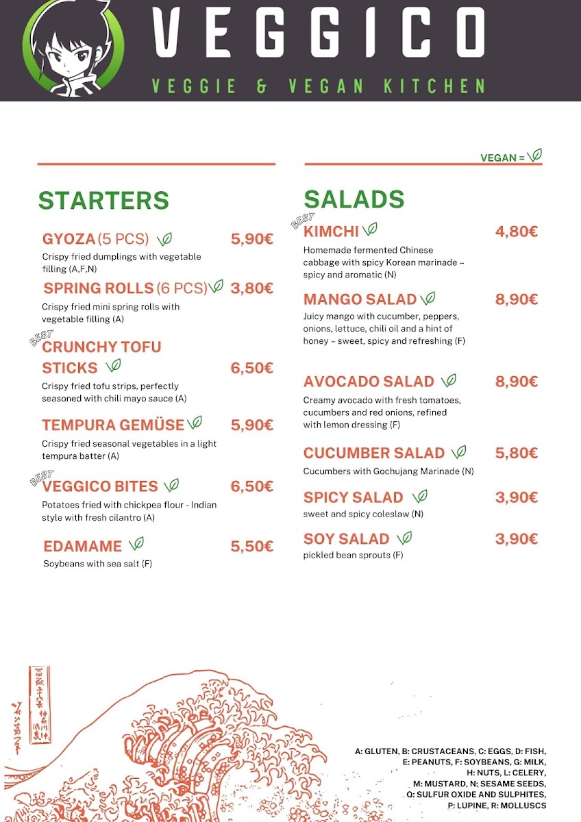................................€9.90saftige Mango mit Gurke, Paprika, Zwiebeln, Blattsalat, Chili-Öl, einem hauch Honig-Süß, scharf und erfrischend durch die Minze.